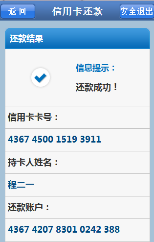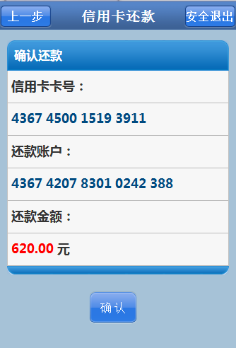 中国建设银行信用卡还款 For Android V1.0版, 本软件主要功能是为持有建设银行信用卡和已开通建行网银的客户实现轻松还款功能,请确保您的手机系统版本不低于android 2.3