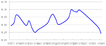 货币市场:由于3月份不少银行季末存款明显增加,需要大量补交存款准备金,上周四、五7天回购利率大幅上行,周五报收于4.2296%