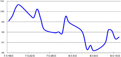 上周五,美元兑人民币中间价报6.1666元,较前周小幅下行2个基点;美元兑人民币即期价格维持窄幅震荡态势,周五即期价格盘终收于6.1150元,较前周小幅下降0.13%。