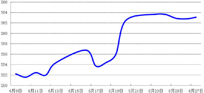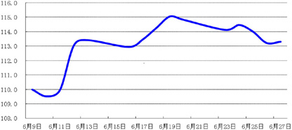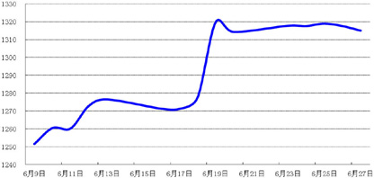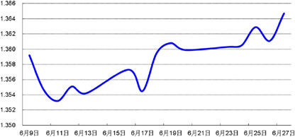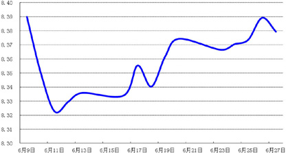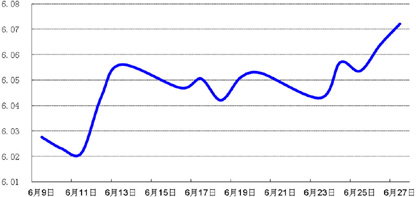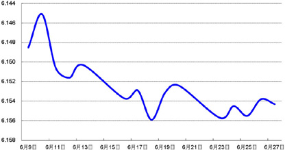 上周,市场预期的年中大额购汇并没有突出表现,市场参与者对短期内人民币走势看法较为分化,人民币对美元即期市场成交价在6.22-6.24元区间持续振荡,周五收于6.2180元,当周累计升值0.13%