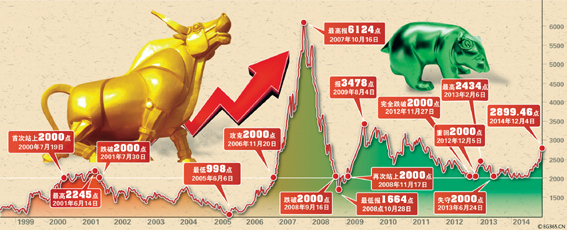 中国社科院金融研究所12月25日发布的2014年《金融蓝皮书》预测,2014年股市再次出现1999年“5.19”行情的可能性增大。本周三沪深股市上涨,沪综指涨0.64%至2106.35点,成交创近期新低。深综指放量涨1.57%至1050.99点。中小板指、创业板指均呈放量格局,其中创业板指大涨2.35%至1288.34点。图/CFP