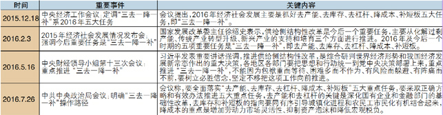 2015年底的中央经济工作会议确定的2016年经济领域“三去一降一补”五大重点任务,并在2016年4月29日中央政治局会议,5月16日中央财经领导小组会议,7月26日中央政治局会议等多次重要会议上提出落实五大重点任务。最近一次政治局会议明确:去产能和去杠杆的关键是深化国有企业和金融部门的基础性改革,去库存和补短板的指向要同有序引导城镇化进程和农民工市民化有机结合起来,降成本的重点是增加劳动力市场灵活性、抑制资产泡沫和降低宏观税负。