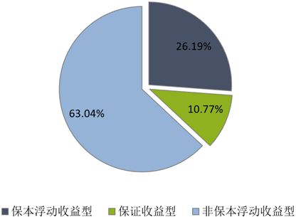 从收益类型来看,保证收益型产品发行了1054款,环比减少12款,市场占比上升0.03个百分点至10.77%;保本浮动收益型产品发行了2562款,环比增加77款,市场占比上升1.14个百分点至26.19%;非保本浮动收益型产品发行了6167款,环比减少202款,市场占比下降1.17个百分点至63.04%。(图1)