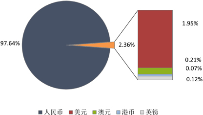 从投资币种来看,人民币产品发行了9552款,环比减少176款,市场占比下降0.43个百分点至97.64%;美元产品发行了191款,环比增加28款,市场占比上升0.31个百分点至1.95%;澳元产品发行了21款,环比增加6款,市场占比上升0.06个百分点至0.21%;港币产品发行了7款,环比保持不变,市场占比保持不变,仍为0.07%;英镑产品发行了12款,环比增加5款,市场占比上升0.05个百分点至0.12%。(图2)