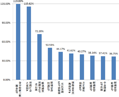 收益表现最好的前十产品中,混合型6款,债券型和股票型各2款。(图10)