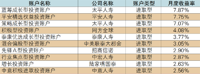 投连险账户业绩表现:月度平均收益率为0.77%,太平人寿蓝筹成长型投资账户表现最佳