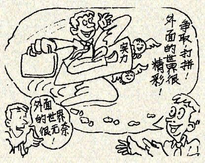 说起各自的经历,小明总是不知道说什么好,觉得外面的世界并没有想象的那么好。而小陈却认为好不好主要还是看自己,专业、机遇、前景,很多东西是要靠自己发现和争取的。