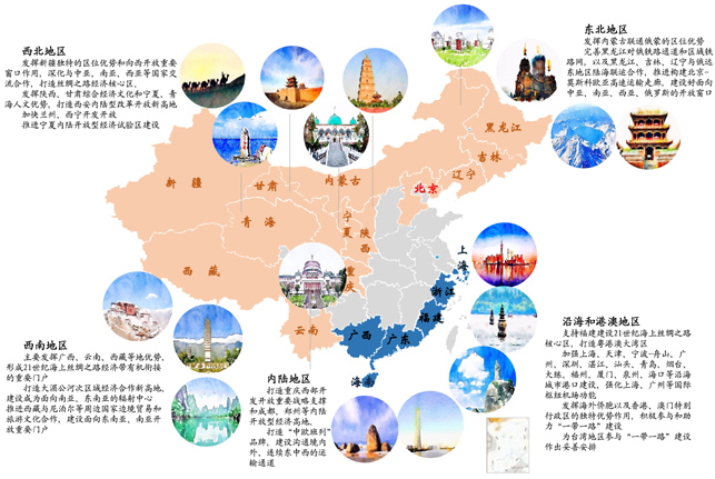 丝绸之路经济带圈定新疆、重庆、陕西、甘肃、宁夏、青海、内蒙古、黑龙江、吉林、辽宁、广西、云南、西藏13个省市。21世纪海上丝绸之路圈定上海、福建、广东、浙江、海南5个省市。这些省市跟“一带一路”有什么渊源?“一带一路”上有哪些故事?让我们跟随龙卡信用卡一起来了解。