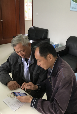 3 建行工作人员正在指导客户如何使用裕农通手机APP