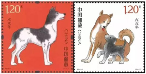 作为生肖文化的发源地,中国的生肖邮票一直被藏友所青睐,因此每年的1月5日就成了生肖藏家的狂欢日。今年中国邮政发行的“戊戌年”生肖邮票由百岁老人周令钊先生操刀设计,不仅延续着第四轮生肖邮票“合家欢聚”的主旨,而且运用写实手法将狗的形象惟妙惟肖地展现出来,生动形象的将三只中华田园犬聚焦在方寸间,以此体现狗作为人类忠实朋友的美誉。在这套第四轮生肖狗年的第一幅邮票上,是一只器宇轩昂的公狗形象,目光瞪视前方,两条后腿有力地向后蹬,一幅“看家护院、守宅平安”之势,以此表达狗对人类的深厚感情;在第二幅邮票中,母狗和小狗相互依偎,不仅肢体上有互动,眼神里也有感情,表达了狗与狗之间的情感。设计者通过这两幅画面,传达“世事万物皆有情”的意境,含蓄地将家之平安和睦以及国之兴旺富强有机联系在一起。