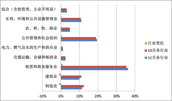 (三)融资类资产的行业占比构成及当月增减变化情况