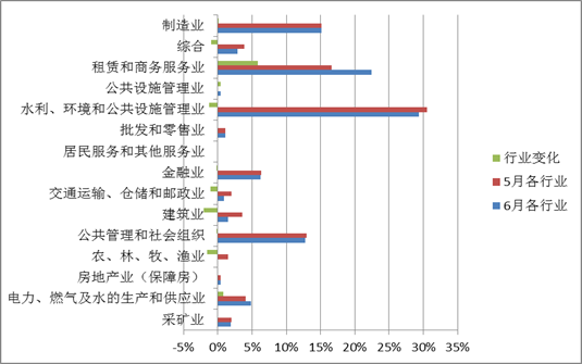 (三)融资类资产的行业占比构成及当月增减变化情况