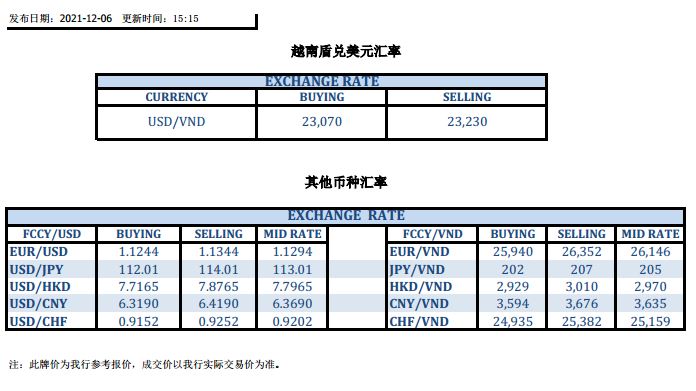 今日汇市 2021-12-06