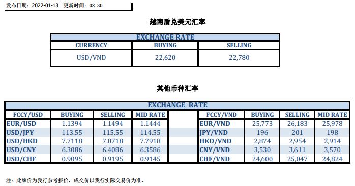 今日汇市 2022-01-13