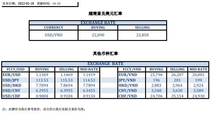 今日汇市 2022-01-18