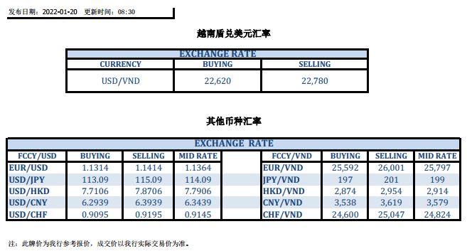 今日汇市 2022-01-20