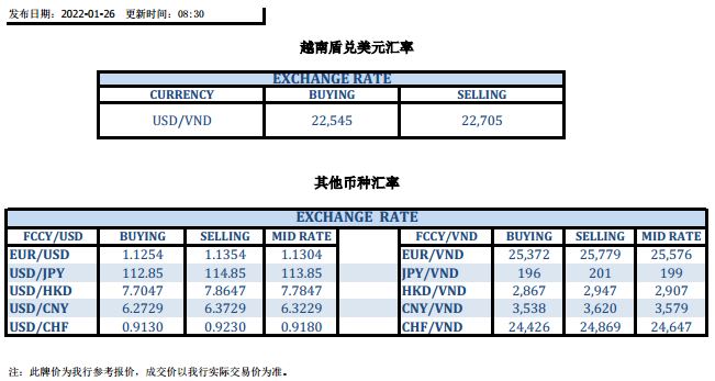 今日汇市 2022-01-26