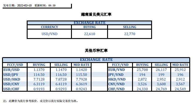 今日汇市 2022-02-10
