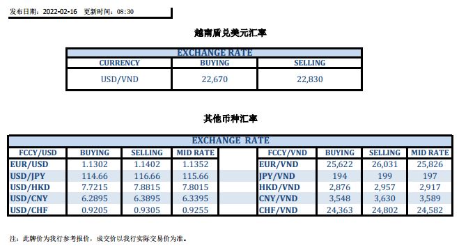 今日汇市 2022-02-16