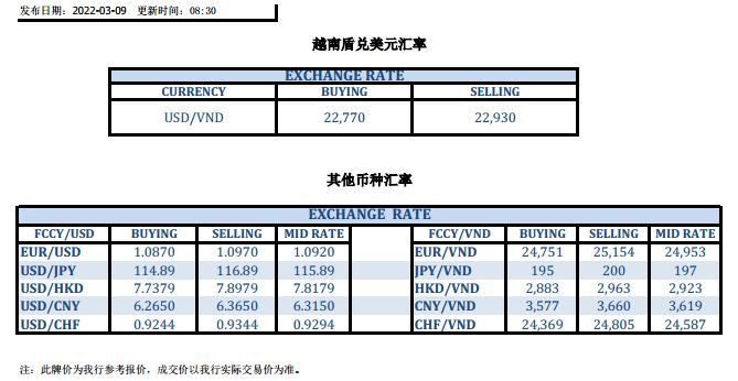 今日汇市 2022-03-09