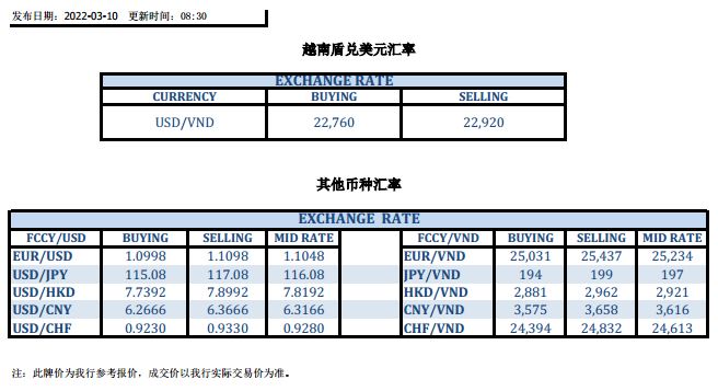 今日汇市 2022-03-10