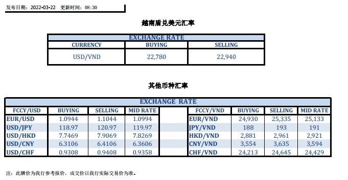 今日汇市 2022-03-22
