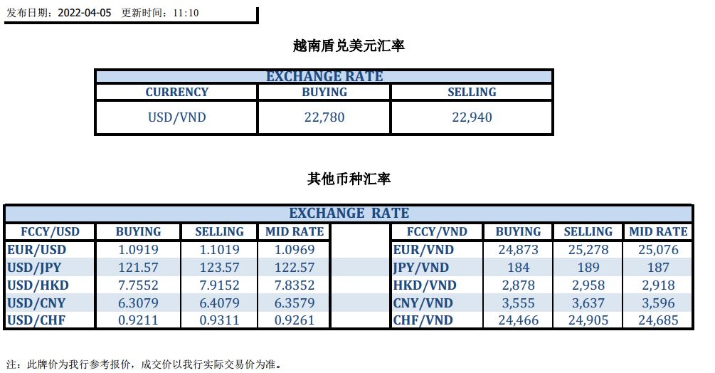 今日汇市 2022-04-05