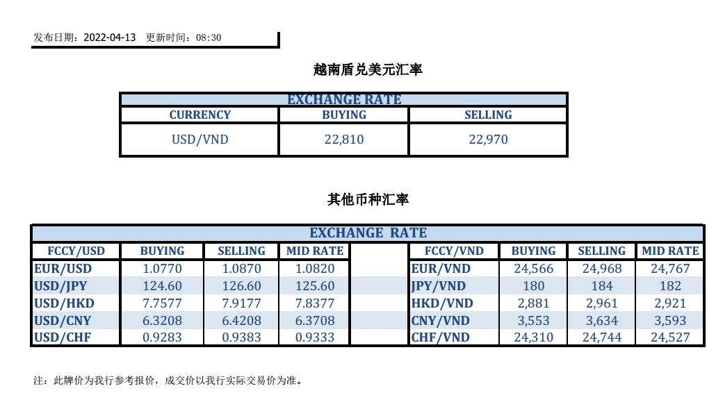 今日汇市 2022-04-13