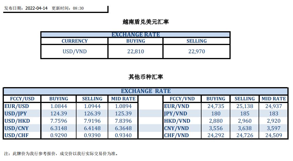 今日汇市 2022-04-14