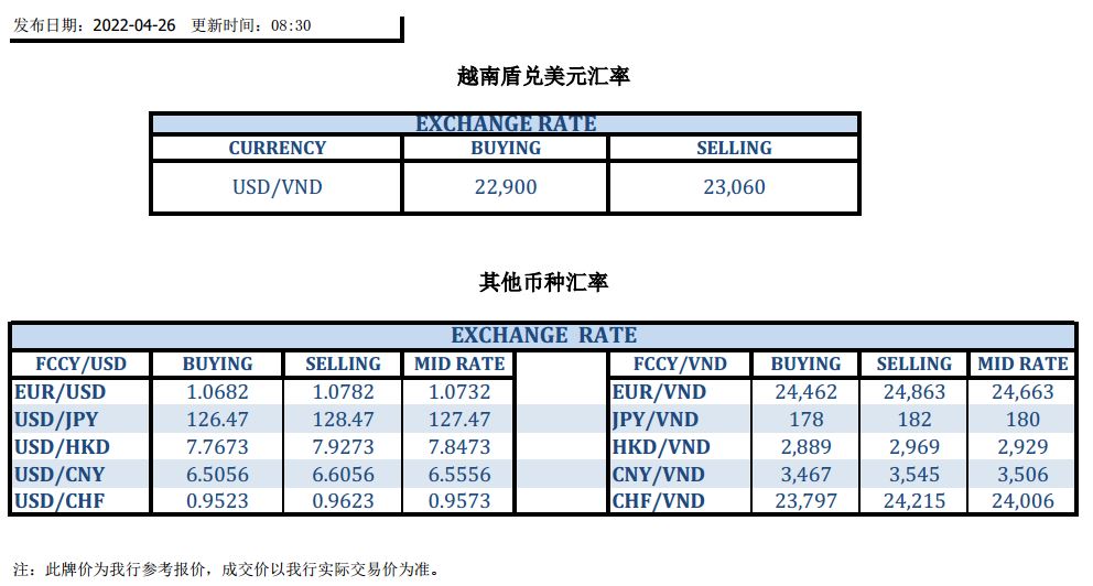 今日汇市 2022-04-26