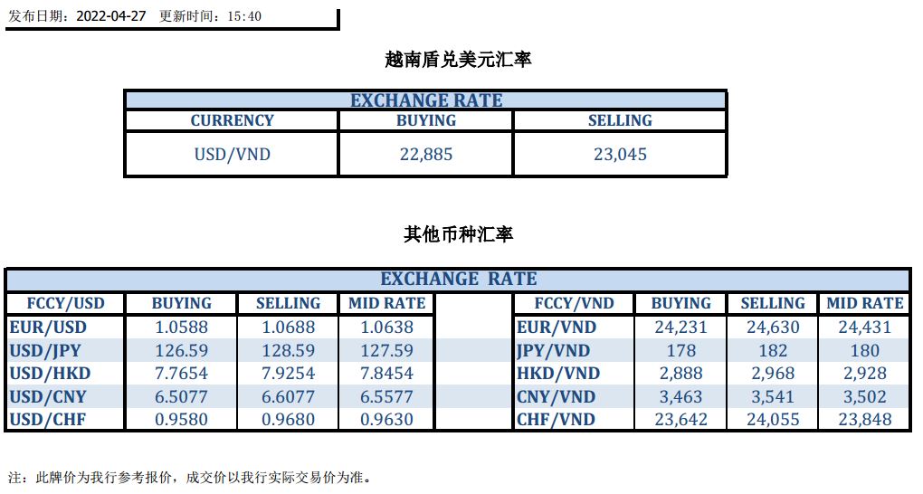 今日汇市 2022-04-27