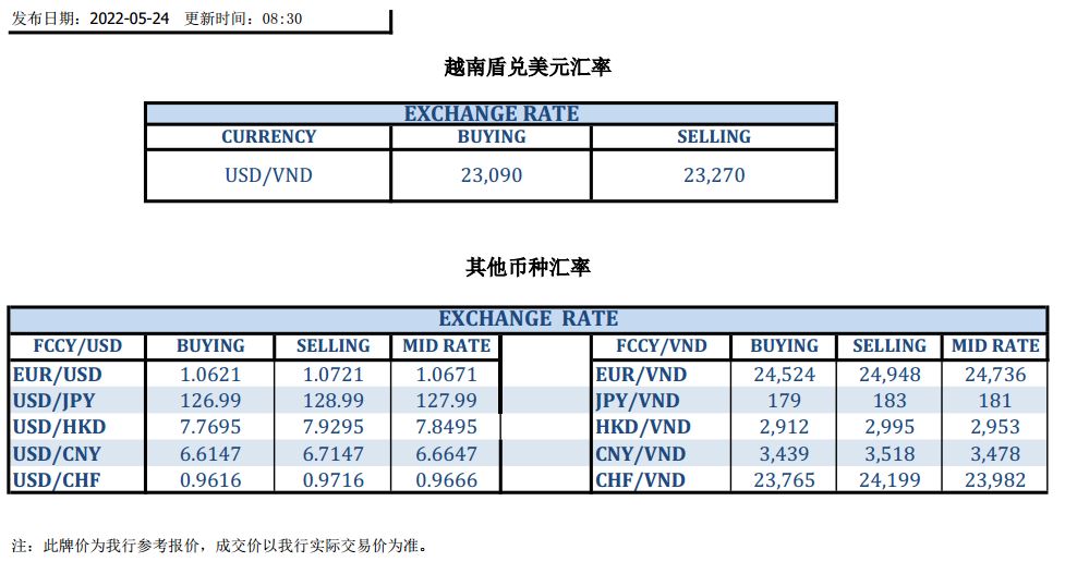 今日汇市 2022-05-24