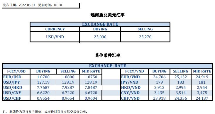 今日汇市 2022-05-31