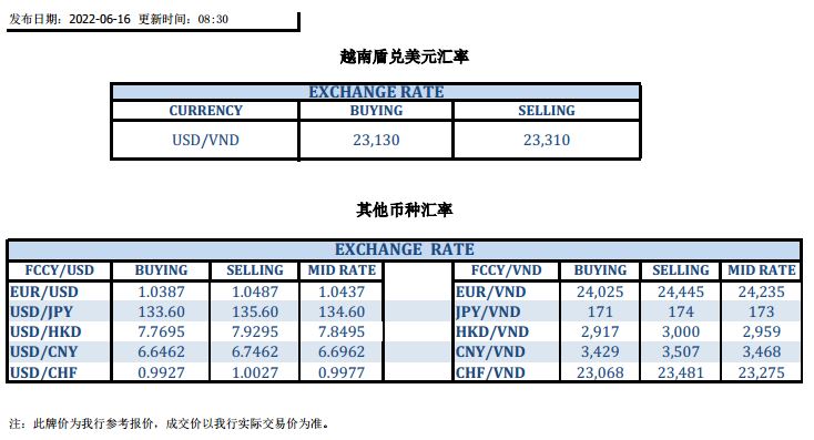 今日汇市 2022-06-16