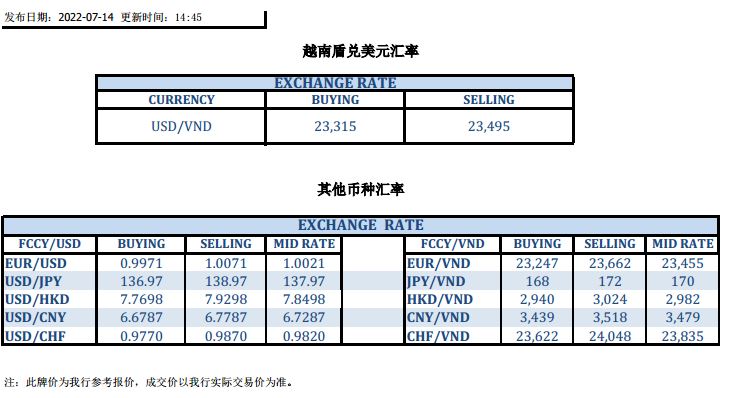 今日汇市 2022-07-14