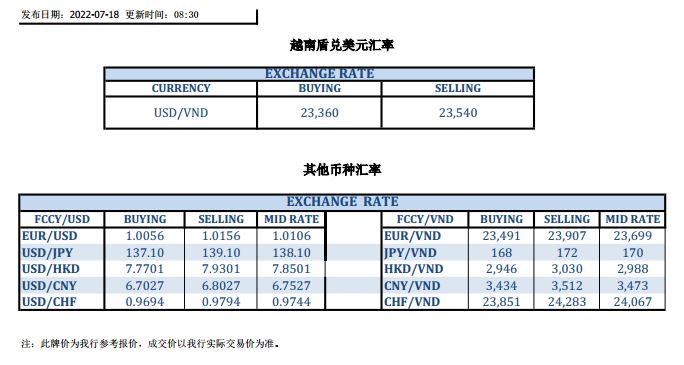 今日汇市 2022-07-18