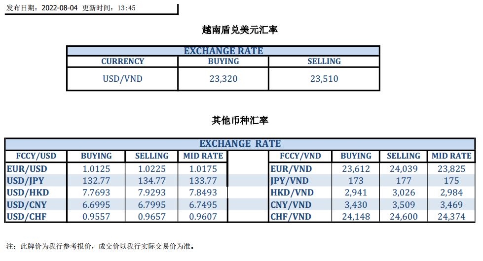 今日汇市 2022-08-04