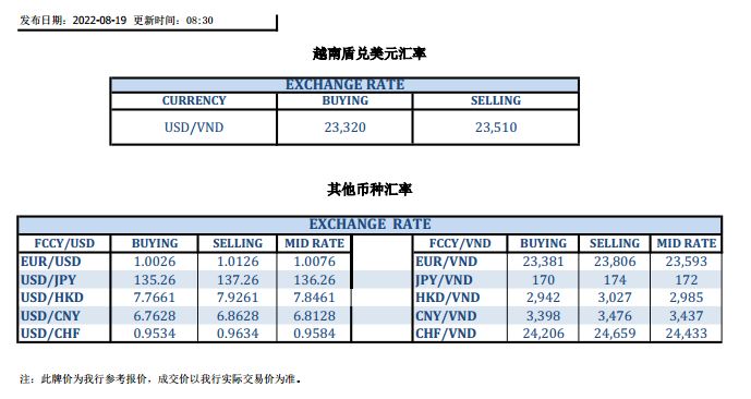 今日汇市 2022-08-19