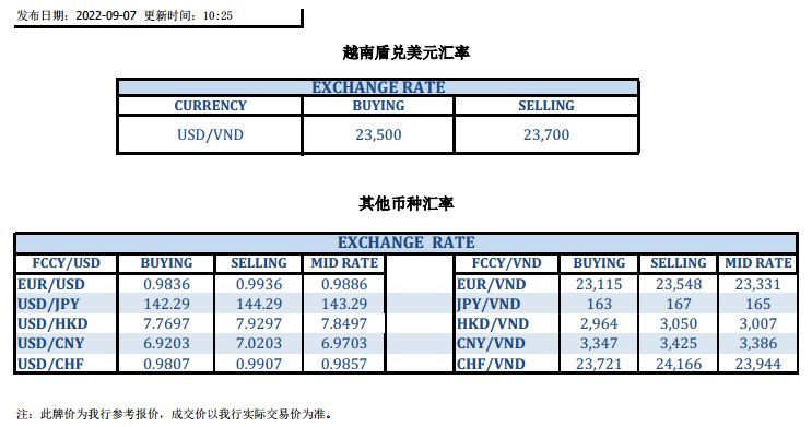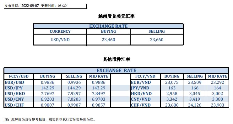 今日汇市 2022-09-07