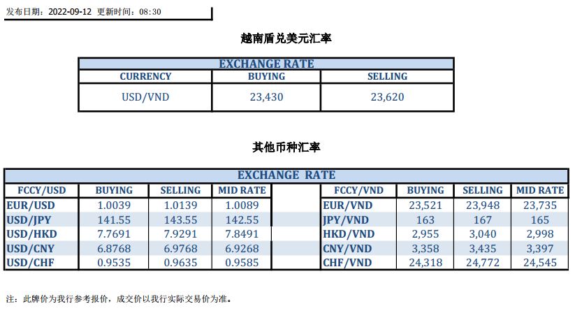 今日汇市 2022-09-12
