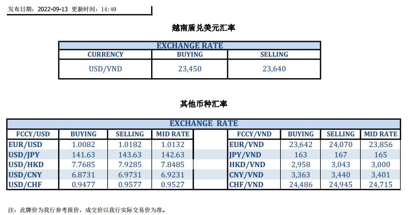 今日汇市 2022-09-13
