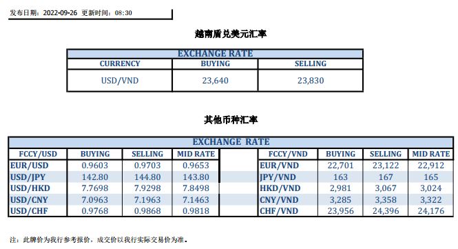 今日汇市 2022-09-26