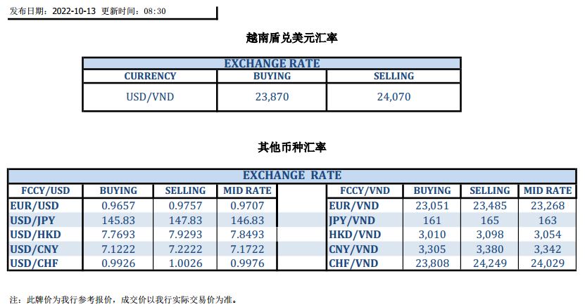 今日汇市 2022-10-13
