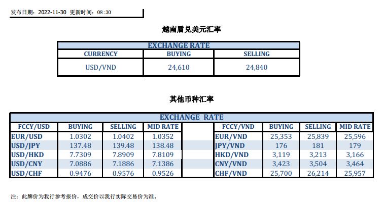 今日汇市 2022-11-30