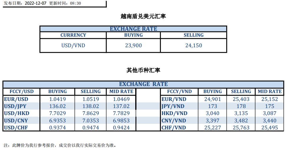 今日汇市 2022-12-07