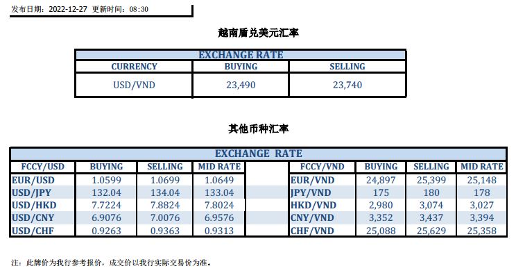 今日汇市 2022-12-27