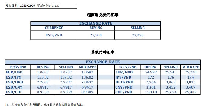 今日汇市 2023-03-07