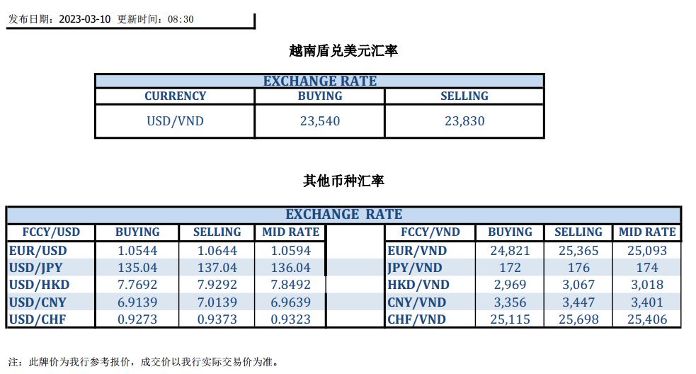 今日汇市 2023-03-10