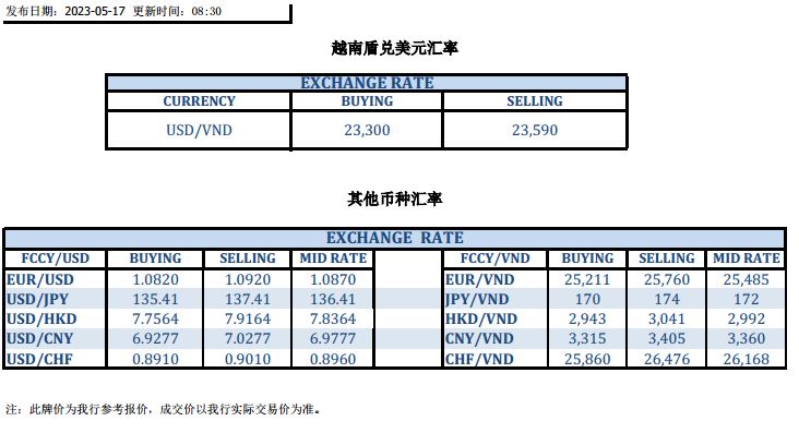 今日汇市 2023-05-17