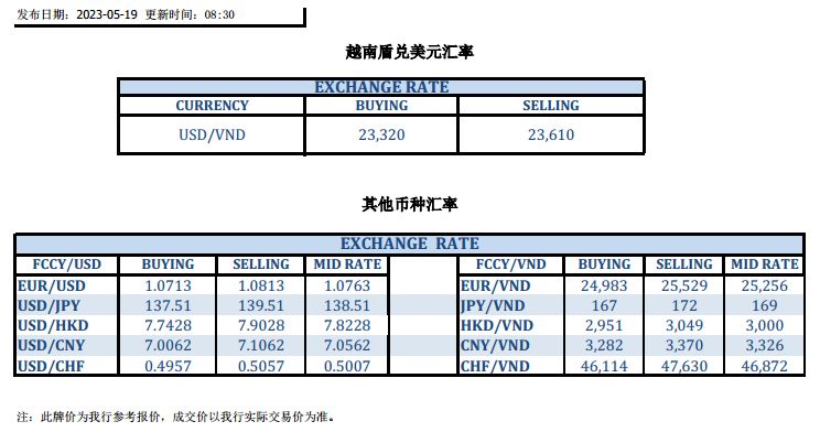 今日汇市 2023-05-19